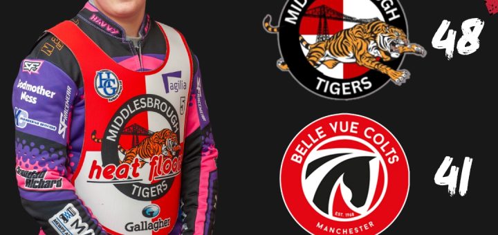 The Middlesbrough “Heat Floors” Tigers took victory on their WSRA National Development League home debut with a battling 48-41 victory over the Belle Vue Colts. Ben Trigger top scored for the Tigers with 13+1...