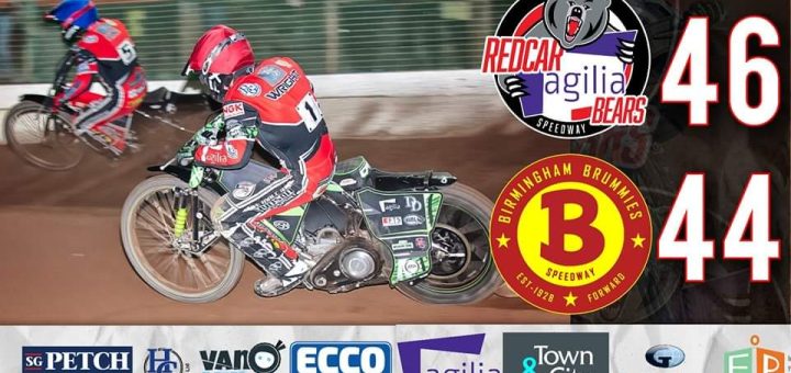Redcar added another valuable 2 points to their Cab Direct Championship tally with a superb, nip and tuck, 46-44 away win at Birmingham. The Bears, who had the meeting won heading into heat 15,...