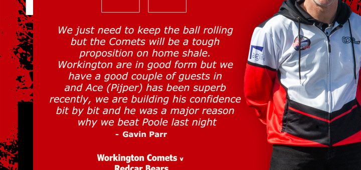BEARS boss Gavin Parr has urged his side to “keep firing” ahead of Redcar’s big Cab Direct Championship match (tapes up at 7:30pm) against Berwick tomorrow at the ECCO Arena. Three league points are...