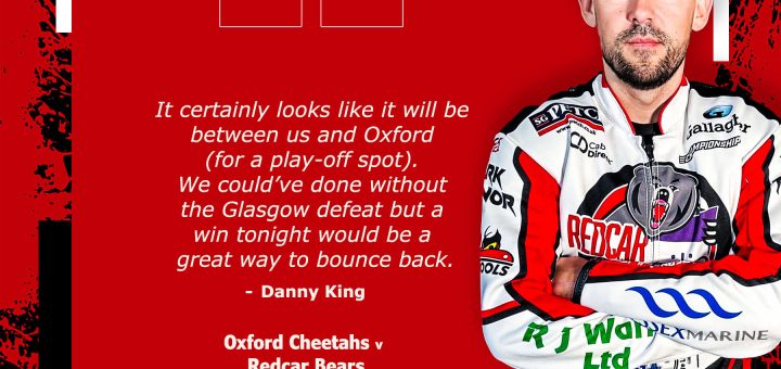 REDCAR star Danny King has urged his “Agilia” Bears side to bounce back and “get back on track” tonight when Redcar travel take on Oxford in the Cab Direct Championship with tapes up at...