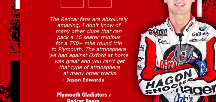 REDCAR star Jason Edwards has heaped praise on the “Agilia” Bears fans ahead of Redcar’s trip to Plymouth tonight. Redcar face the Gladiators at the Coliseum with tapes up at 7pm, and incredibly, the...