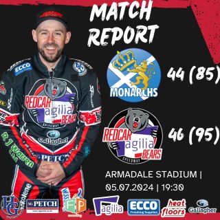 Redcar produced a monumental comeback to keep their play-off hopes alive with a brilliant 44-46 away win at Edinburgh. Kye Thomson top scored for the Monarchs with 10+2 whilst Danny King hit a scintillating...
