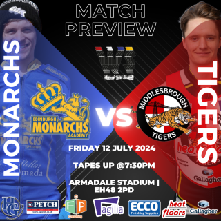 Next up at the ECCO Arena, we welcome the Edinburgh Monarchs Academy in the WSRA National League (tapes up @ 3pm) as they take on our Middlesbrough “Heat Floors” Tigers For just £10 (payable...