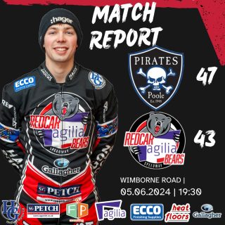 The Redcar “Agilia” Bears performed superbly to hit their highest points total at Wimborne road and take the Poole Pirates all the way to a last heat decider. Poole eventually took a hard fought...