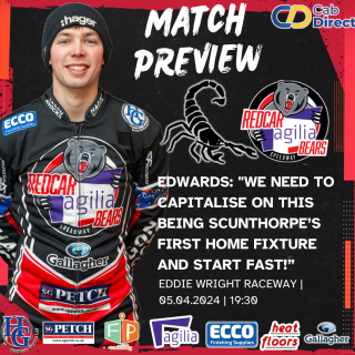 Redcar starlet Jason Edwards believes the Bears must capitalise on Scunthorpe’s lack of a home meeting and start strongly as the “Agilia” Bears begin their BSN Series Northern Group fixtures with a trip to...