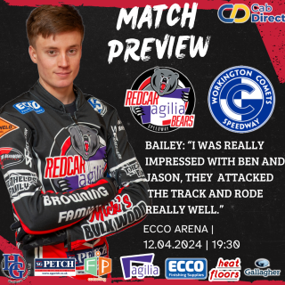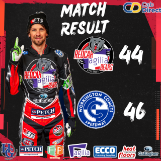 The Redcar “Agilia” Bears were shocked by a resolute Workington side at the ECCO Arena with the Comets running out 44-46 winners in the BSN Series. Despite the Bears starting the meeting on fire,...