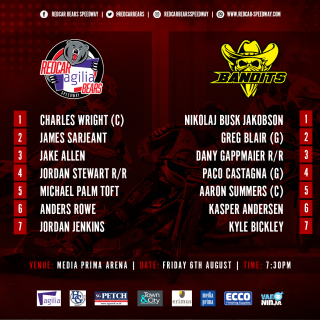 Redcar are set to continue their play-off charge when they entertain the Berwick Bandits tonight, (19:30 start). The Bandits will no doubt be looking for revenge for the 48-42 defeat inflicted at Sheilfield Park...