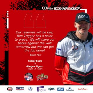 REDCAR boss Gavin Parr believes the Bears reserves will be key if the side are to maintain their 100% home record and beat the Glasgow Tigers tomorrow night. The “Agilia” Bears are aiming to...