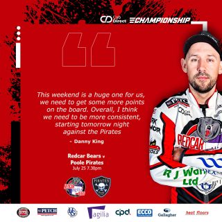 REDCAR star Danny King has labelled the Bears two Cab Direct Championship clashes this weekend as “huge” for the club. Redcar begin two matches in 24 hours by hosting Poole at the ECCO Arena...